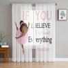Ballet Dancer Girl Pink Flower Sheer Drapes Window Curtains for Living Room Bedroom Home Decor Cherry Blossoms Chiffon Curtain