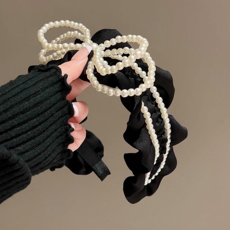 Exquisite Pearl Bow Pleated Headband: Trendy & Versatile Hair Accessory