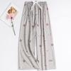 Women's Floral Cotton Silk Pajama Pants, Mosquito Repellent, Outdoor & Home Wear, Plus Size, Lightweight Summer Style.