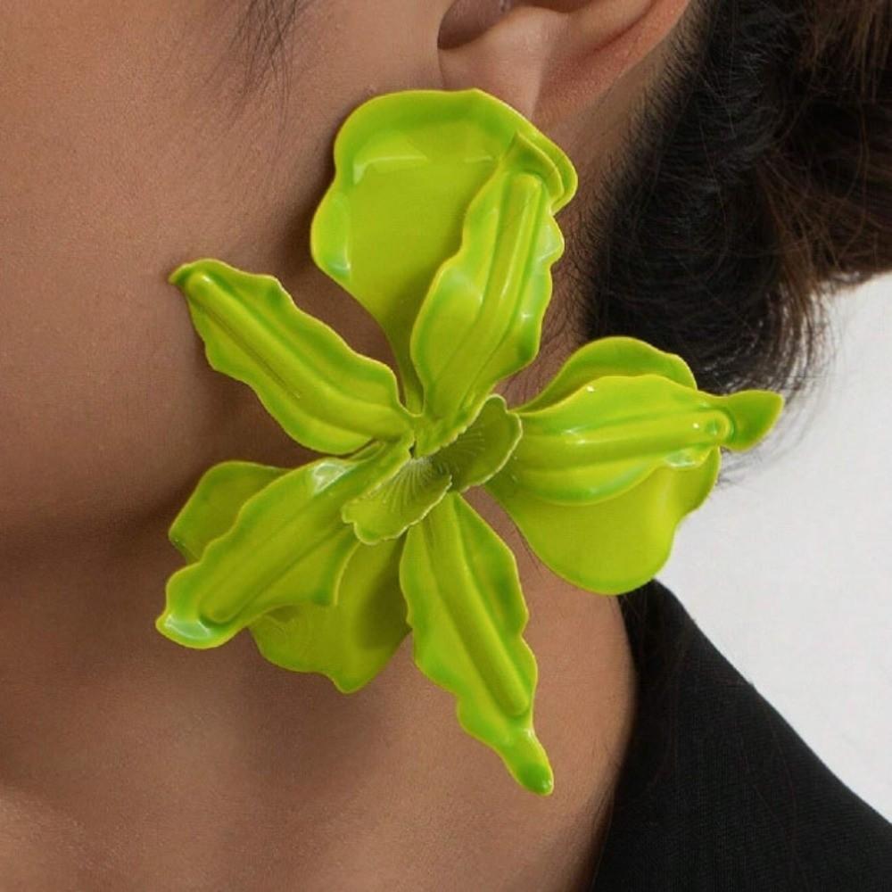 Pleated Exaggerated Flower Earrings Baking Paint Ear Accessories Large Flower Earrings Women