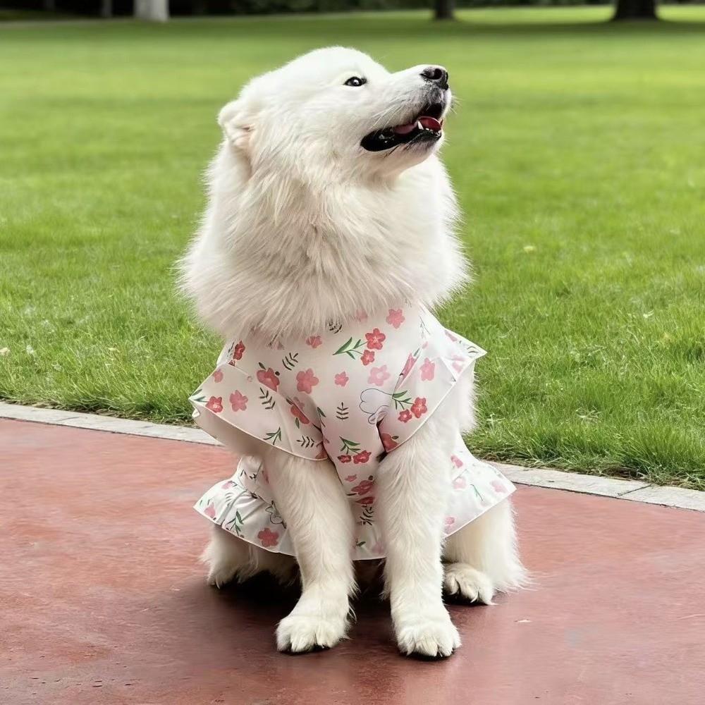 Fruit Print Pet Princess Dresses Flutter Sleeve Dog Cooling Clothes Dog Floral Skirt for Pet Party