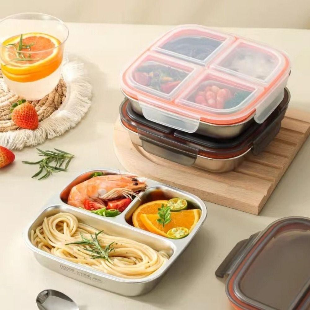 3/ 4 Grids Stainless Steel Lunch Box Leak Proof Student Meal Plate Food Container Camping