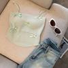 Women's Sweet Pink Bow Embellished Spaghetti Strap Knit Tank Top
