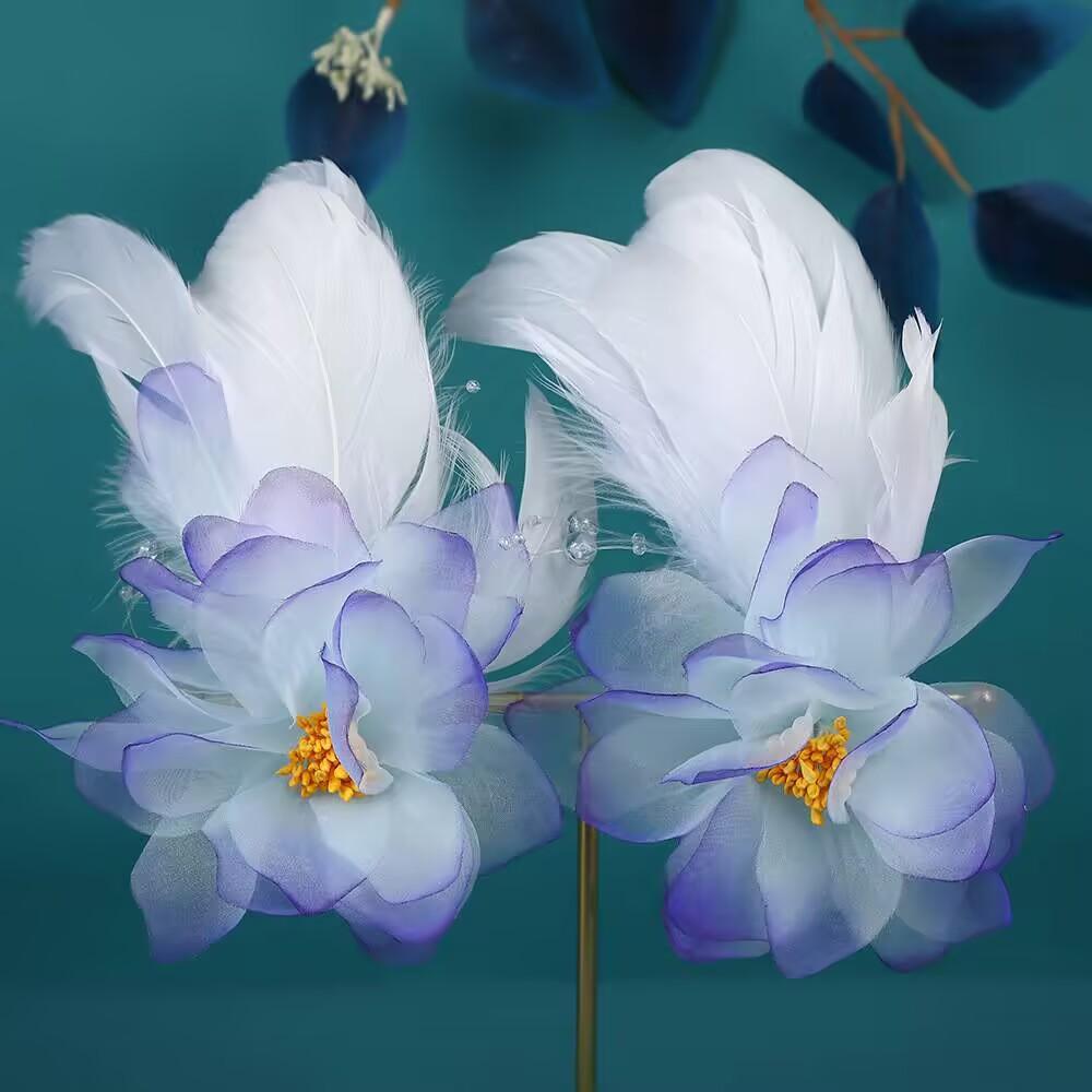 New Antique Original Design Handmade Silk Yarn Hot Flower Hair Accessories Super Fairy Feather Hairpin Hanfu Headdress