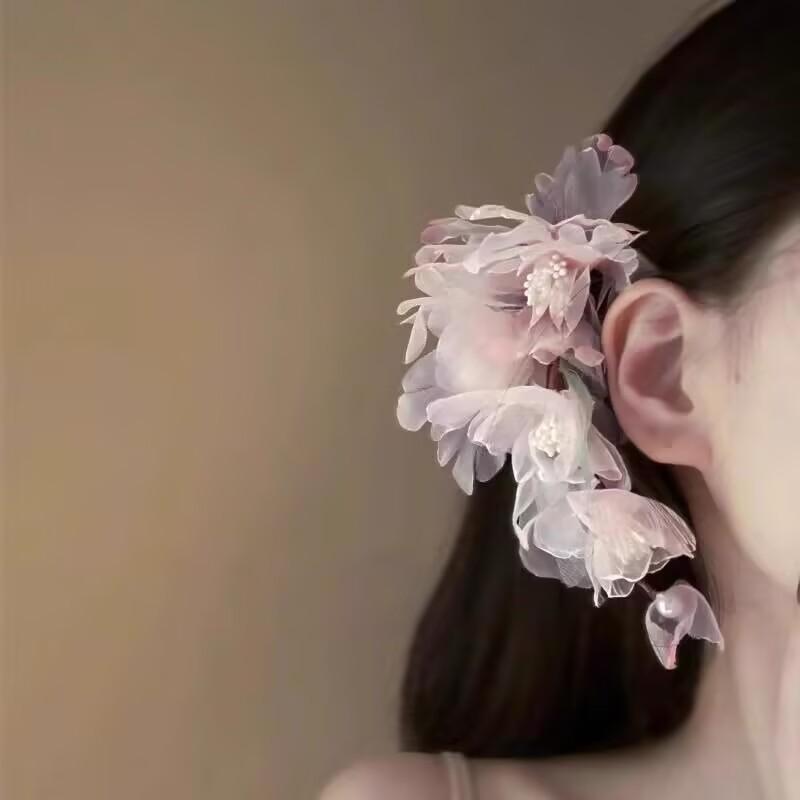 Pure Pink Super Immortal Daily Silk Yarn Flower Hairpin Fashion Side Clip Hair Disc Court Hanfu Accessories