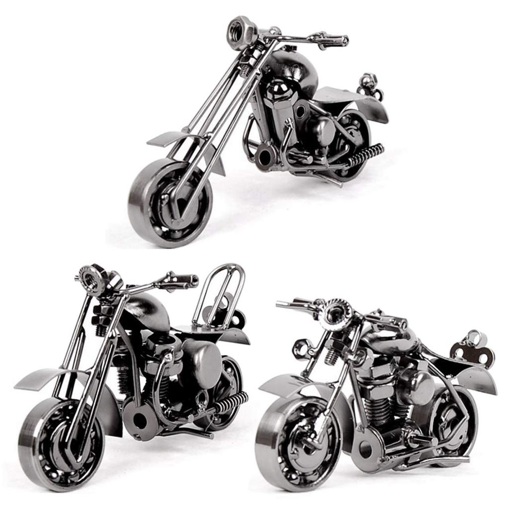 HAMILO Motorcycle Interior Decor Miniature Set of 3 Antique-Style Figurines, (Black)