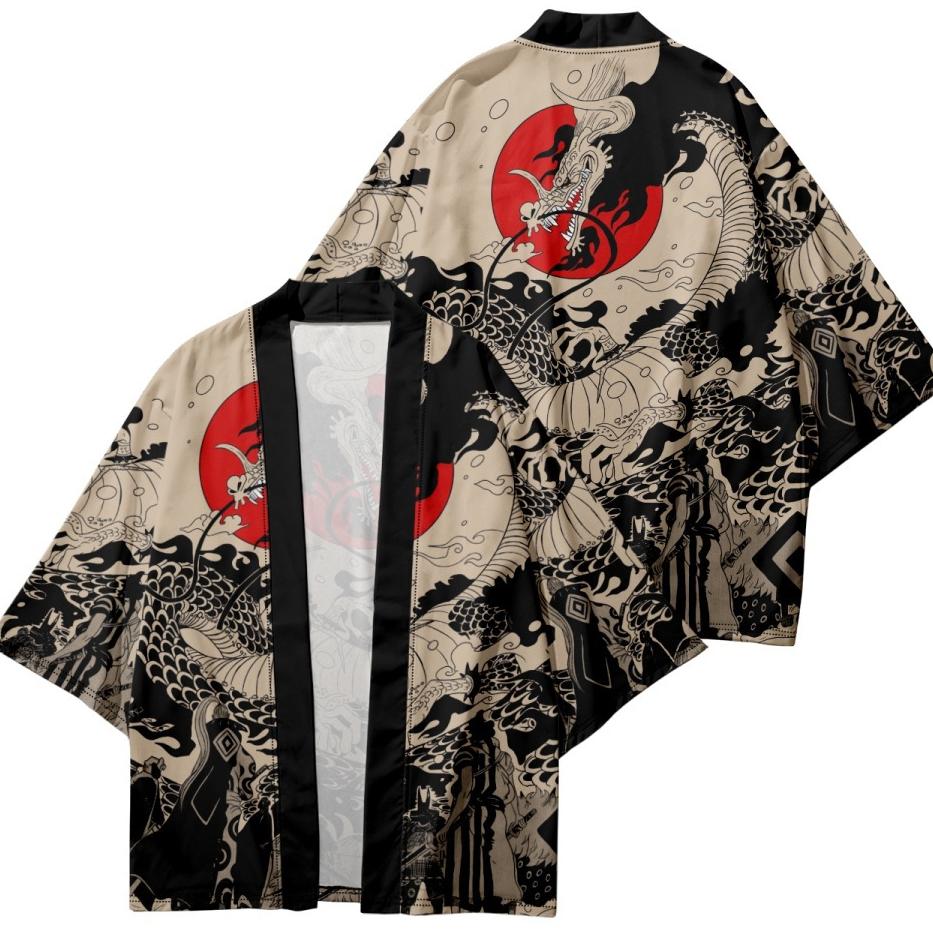 Traditional Samurai Kimono Men Japanese Anime Dragon Print Cosplay Haori Female Cardigan Yukata Shirt Summer Robe
