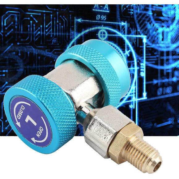 Quick Coupler R134A A/C Low Side Blue 90 Connector Air Conditioning Adapter with Extractor Valve Core, 1/4 Inch Male