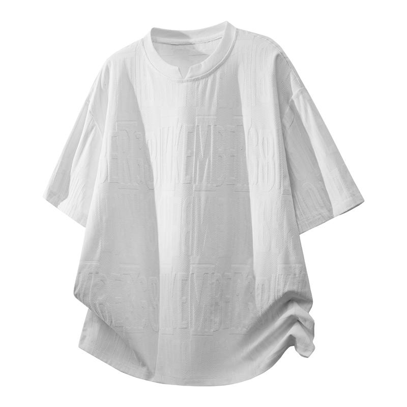 Summer Short Sleeved T-shirt Men's Ice Silk Versatile Top Half Sleeved T-shirt Round Neck Jacquard T-shirt