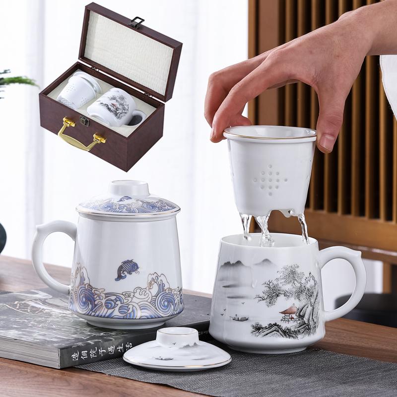 Ceramic Tea Infuser Mug with Lid and Custom Logo - Large Capacity