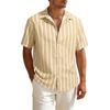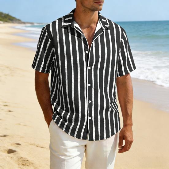 This men's short sleeve shirt is crafted from a premium linen blend, offering a lightweight, breathable, and natural feel for all-day comfort. Featuring a stylish turndown collar and a vertical stripe pattern, it flatters your figure while providing a casual yet polished look.