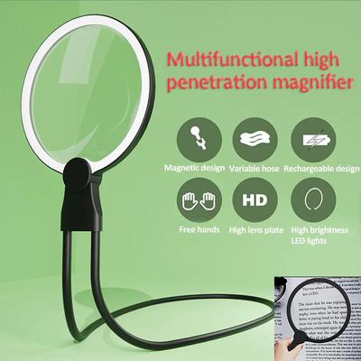 Large Lens Rechargeable Magnifier with 24 LEDs Multi-purpose Portable HD Magnifier Neck/Handheld/Desktop for Reading Jewellery
