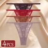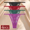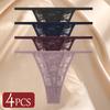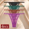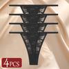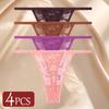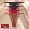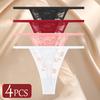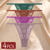 4Pcs/Set Sexy Lace Panties Women Elastic Hollow Out Transparent G-string Thong Female Lace Underpants Perspective Sexy Intimates