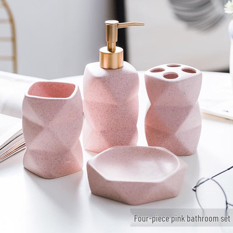 OLOEY Irregular Pink Ceramic Bathroom Set