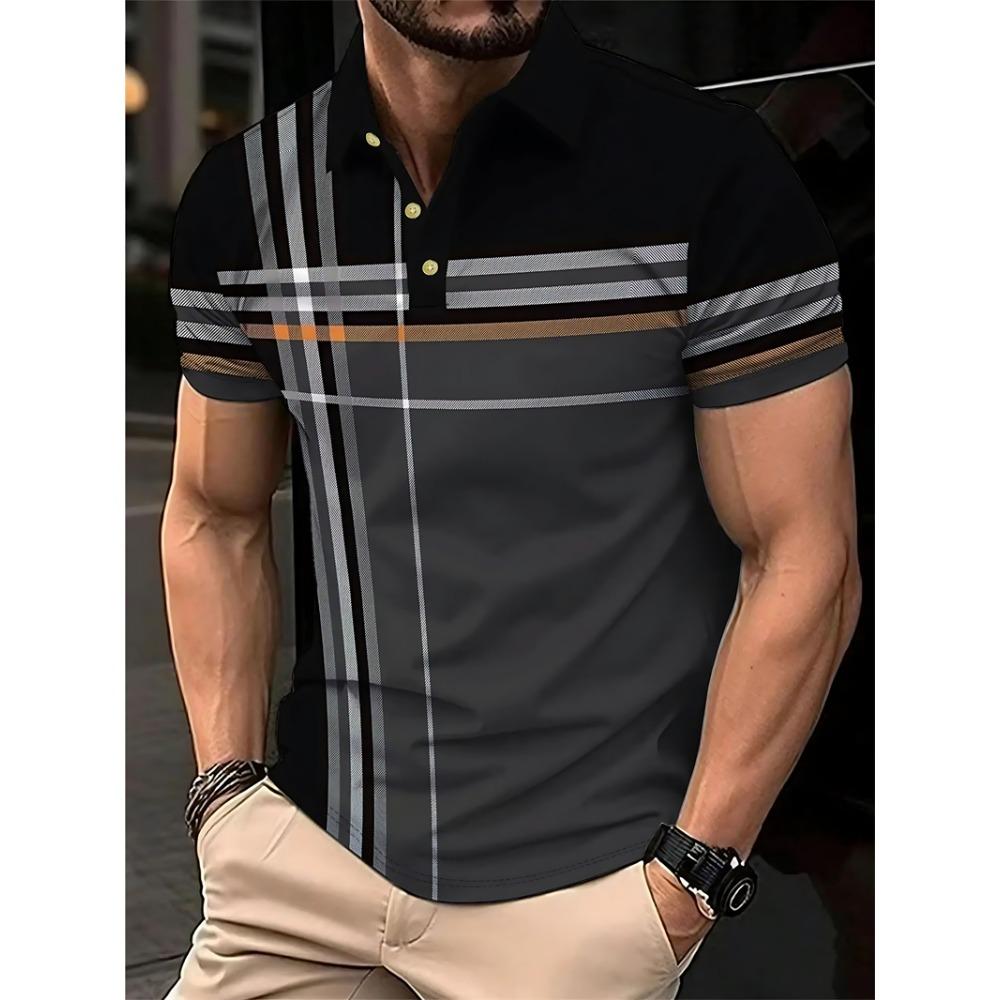Simple Striped Polo Shirts For Men Summer Casual Short Sleeve 3D Printed Business Polo Shirt Loose Breathable Daily Wear Tees
