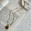 Tiger-eye Stone Pendant Necklace, Sunflower Pendant, Luxury and Niche Titanium and Steel Chain, Non-fading Sweater Chain