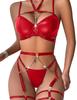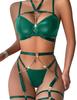 Lilosy Sexy Pu Leather Strappy Underwire Garter Belt Lingerie Set