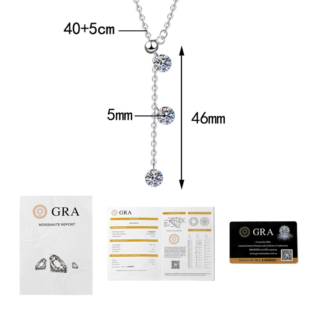Platinum PT95018k Gold Moissanite Necklace for Women, Simple and Luxurious Tassel Pendant, Adjustable Collarbone Chain