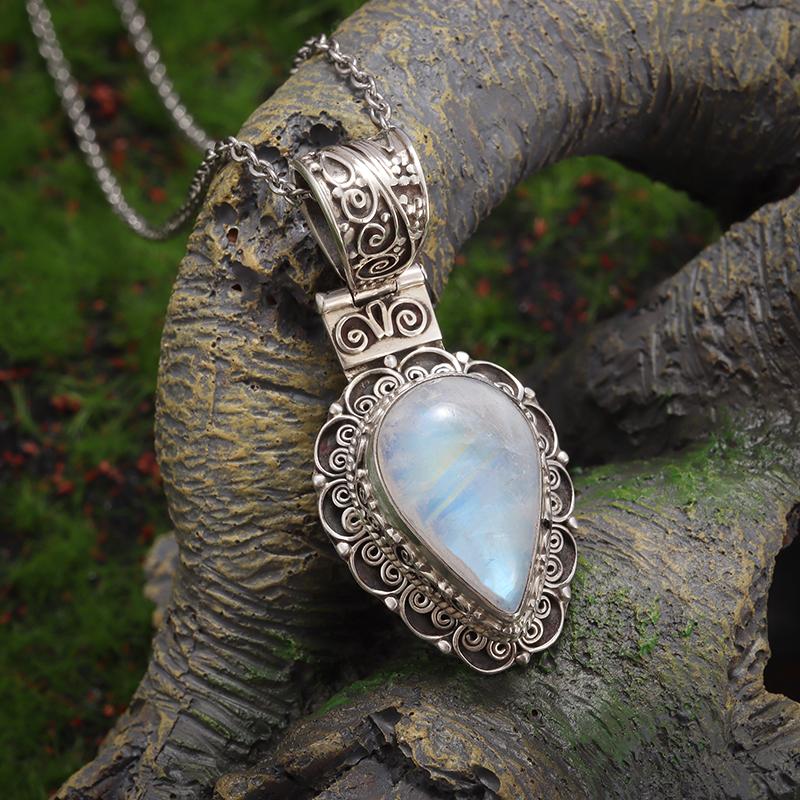 Exquisite Water Drop Moonstone Pattern Pendant Necklace Women's Fashion Elegant Party Jewelry Girls Gift