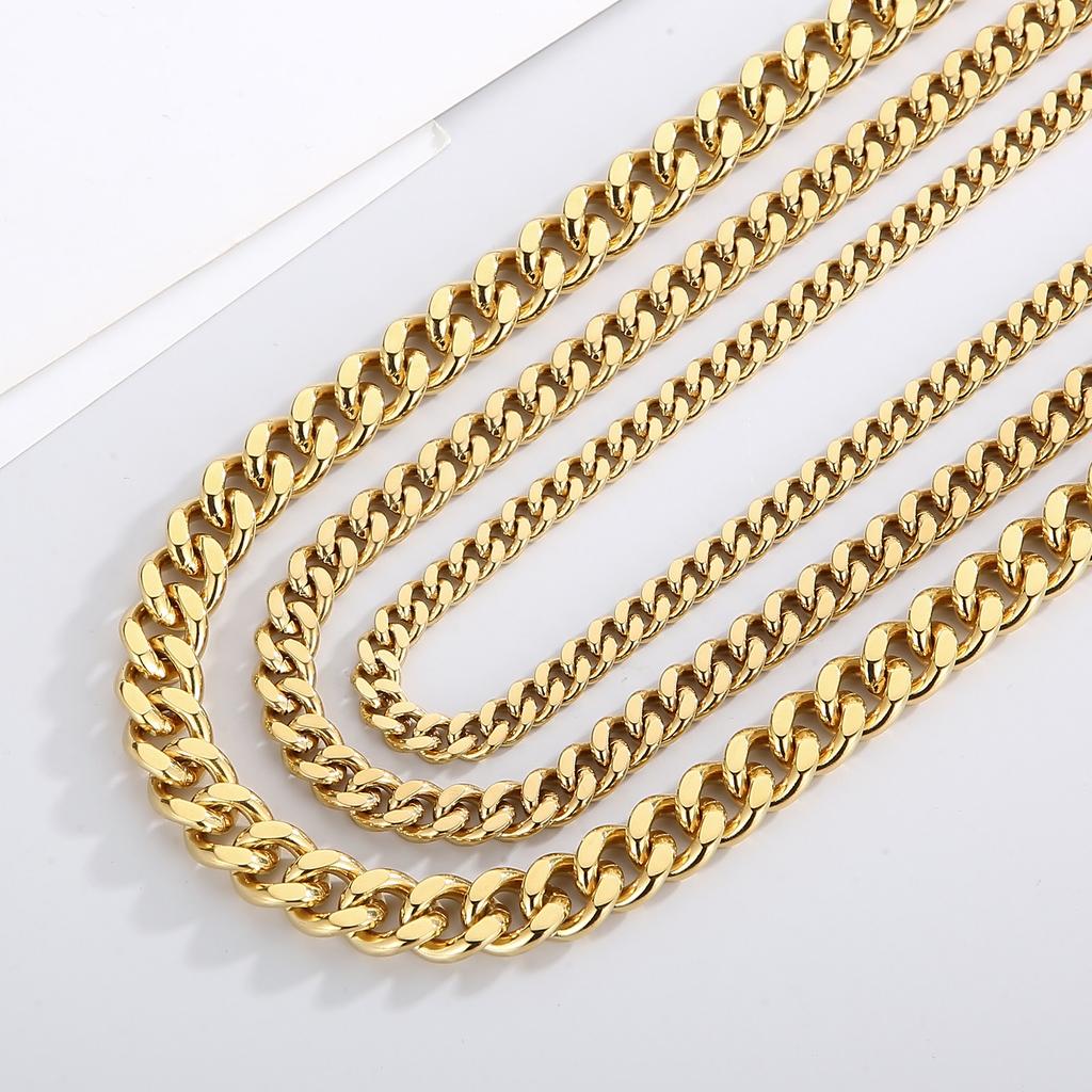 6/8/11mm Hip Hop Gold Color Multi Size Curb Cuban Chain Necklace Bracelet Men Women Stainless Steel Jewelry Thick Best Gift