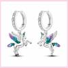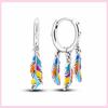 925 Silver Colorful Feathers Drop Earrings Dream Catcher Bohemia Asymmetry Dangle Earrings Original Wedding Jewelry For Women