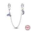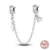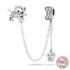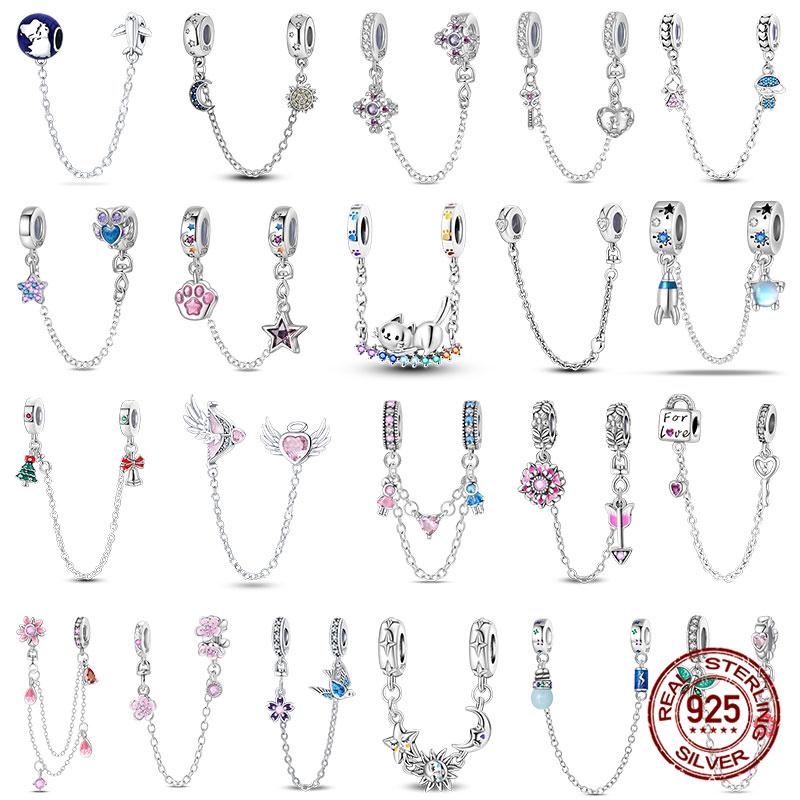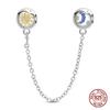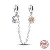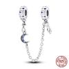 Original 100% 925 Silver Star Moon Safety Chain Fit 925 Original Bracelet & 3mm Bracelet DIY Jewelry Making Women Gift