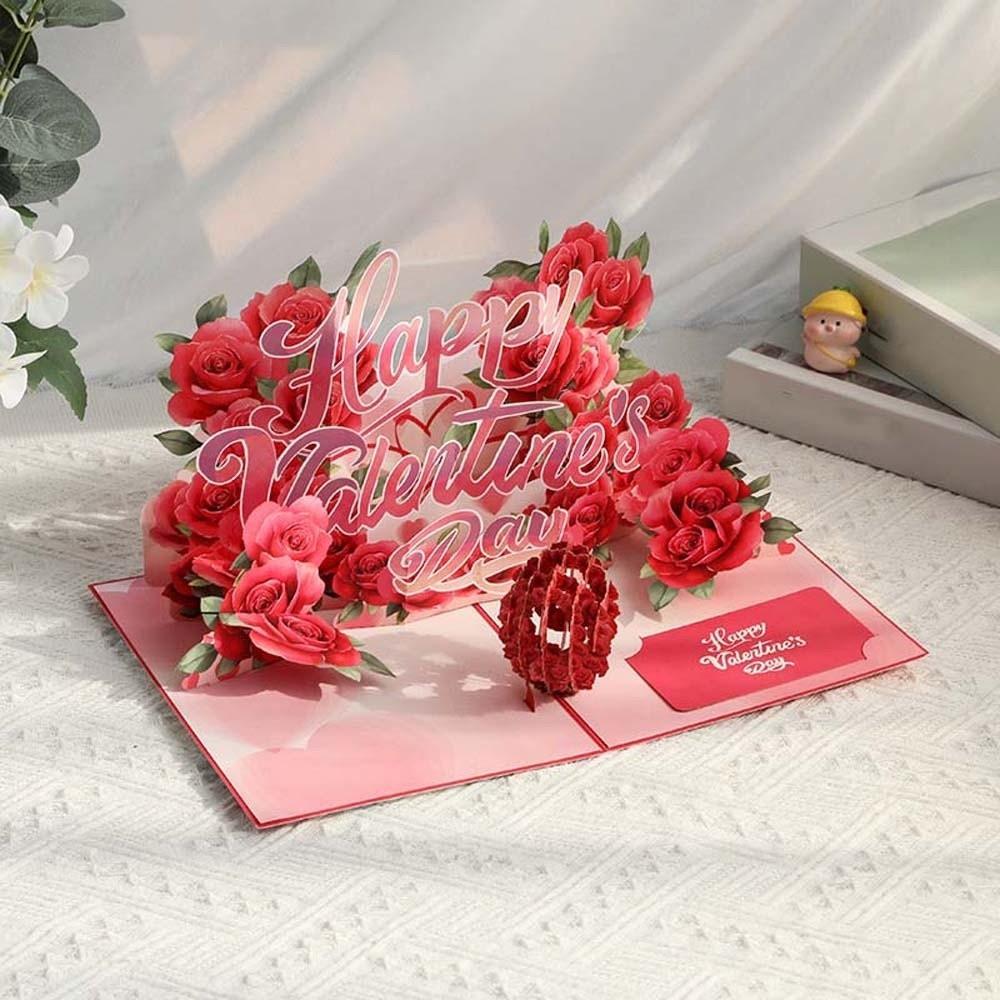 Paper Valentine's Day Greetings Card Blessing Party Invitation 3D Invitation Card Red Handmade Confession of Love Artifact