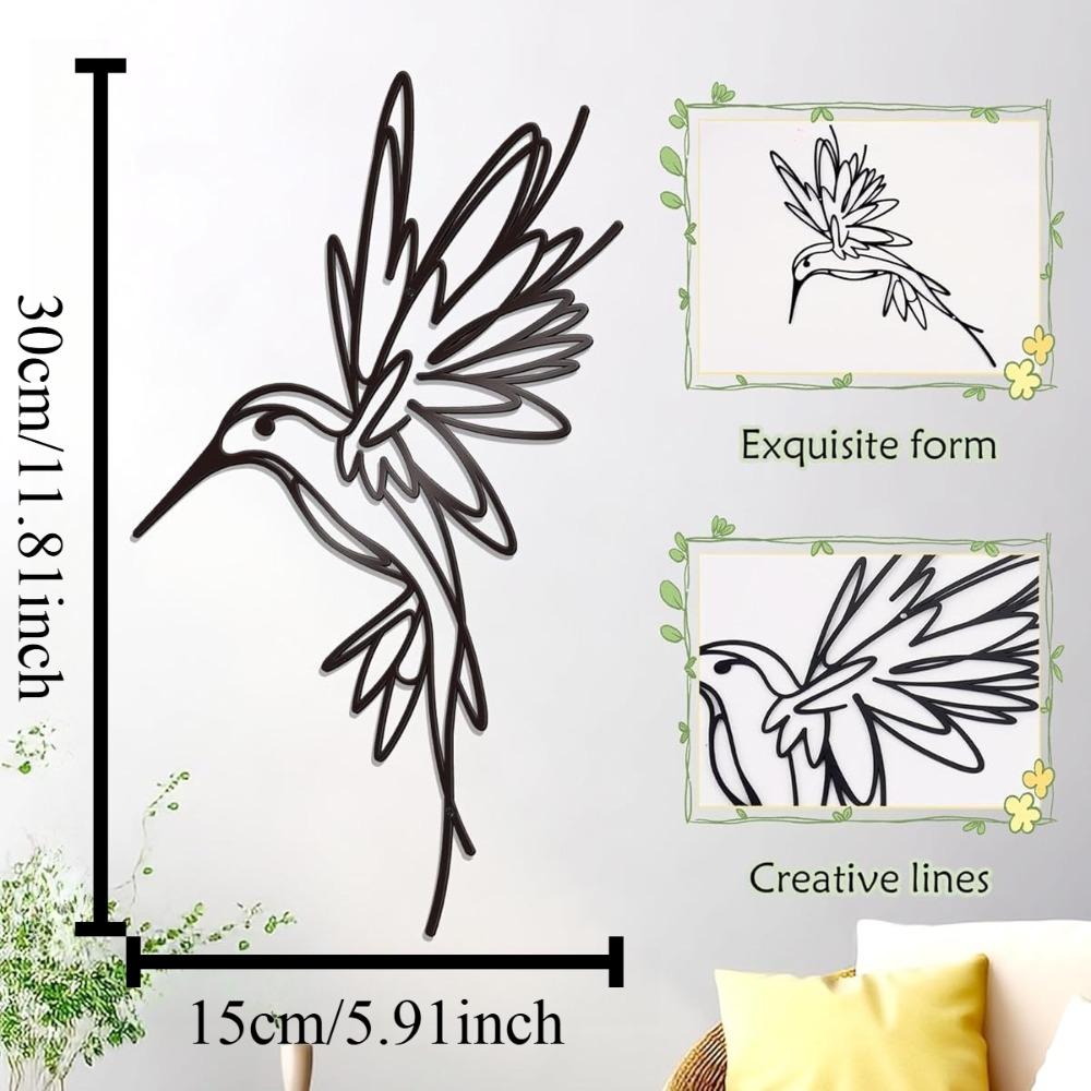 Modern Minimalist Black Hummingbird Metal Wall Decor 9.4x17.2in Outdoor Art Sculpture