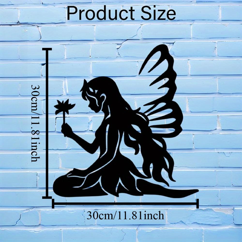 2D Metal Fairy with Lotus Wall Art, Iron Silhouette Sign for Garden, Yard, Living Room Decor, Indoor Outdoor, No Electricity Needed, Magical Accent
