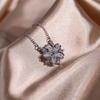 Fashion Silver Necklace for Women Shiny Pink White Zircon Cherry Blossom Pendant Luxury Pink Cherry Blossom Necklace