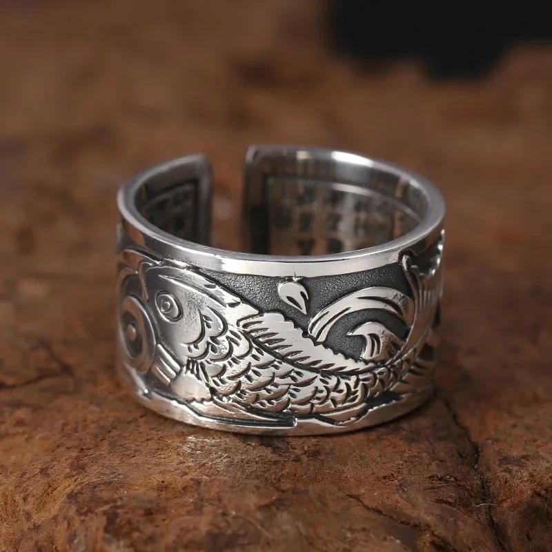 New Original Design Koi Fish Pattern Opening Ring Fashion Minority Charm Men and Women Wear Decoration Party Gift