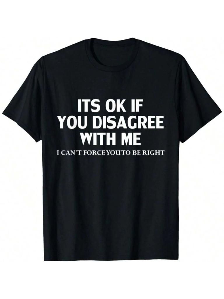 Funny Its Ok If You Disagree with Me Printed Tshirt Soft Fabric Casual Loose Cotton Clothing Sports Fashion Streetwear Unisex