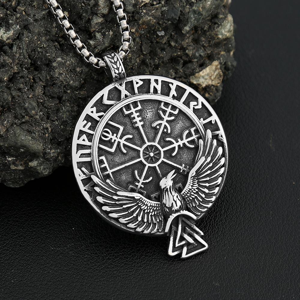 Nordic Vikings Stainless Steel Compass Rune Pendant Necklace For Men Women Vintage Odin Raven Necklaces Amulet Jewelry