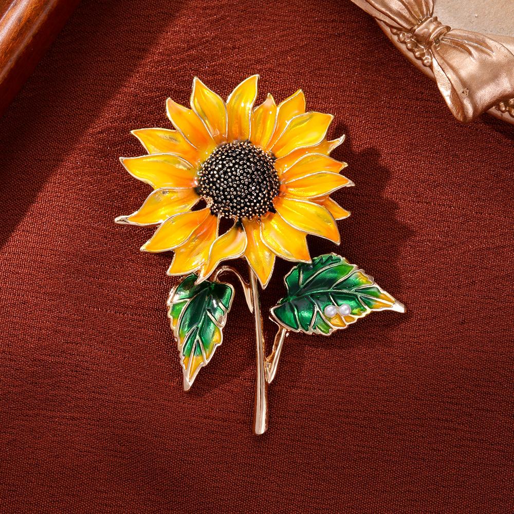 Stylish and Elegant Sunflower Brooch Creative Plant Flower Pin Jewelry Sweater Jacket Accessories