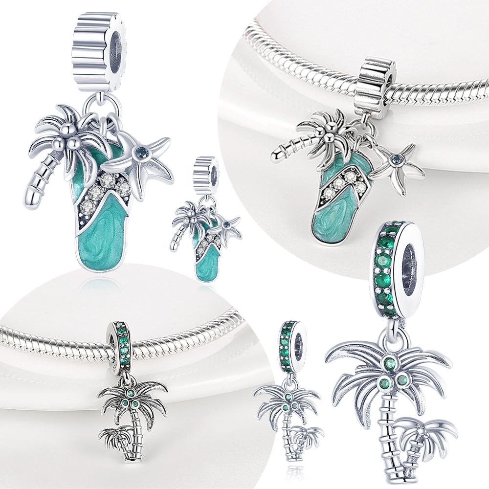 925 Silver Charms Summer Blue Coconut Plant Tree Beads Fit Bracelet Jewellery Making Diy Friend Luxury Gift
