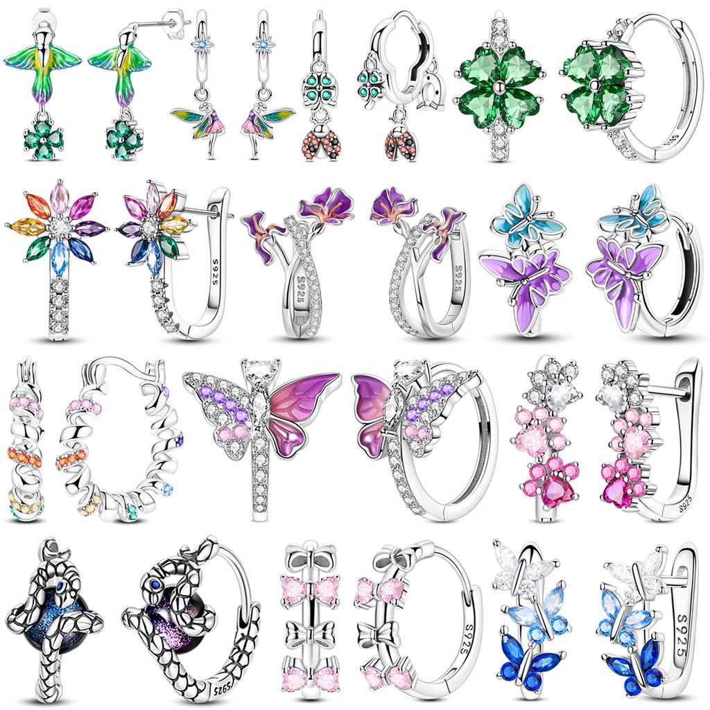 Sparkling Woman Hoop Earring 925 Silver CZ Zircon Firefly Butterfly Clover Ear Stud Earrings Jewelry Anniversary Gift
