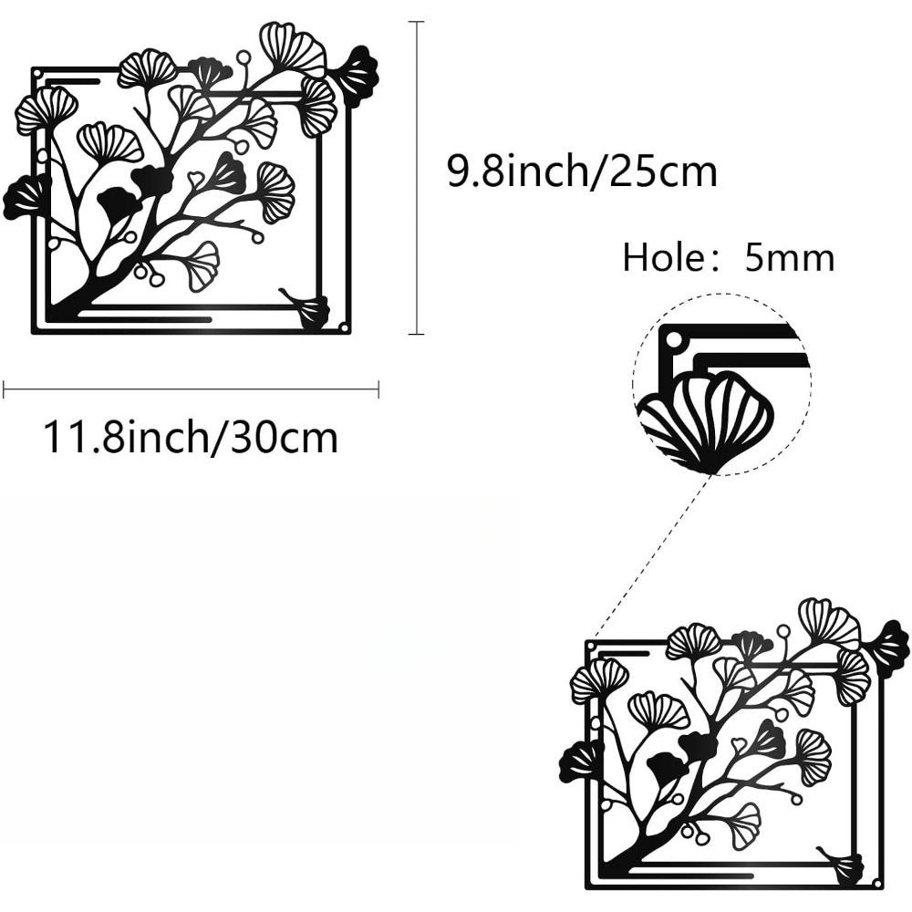 Ginkgo Metal Wall Art Iron Leaf Decor Hanging Ornament for Home Living Room Bathroom Garden Indoor Outdoor Gift 11.8x9.8 Inch