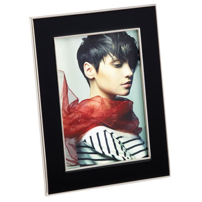 Cadre portrait - Mathis - 13x18 cm - Métal noir - Bords argentés - Velours noir
