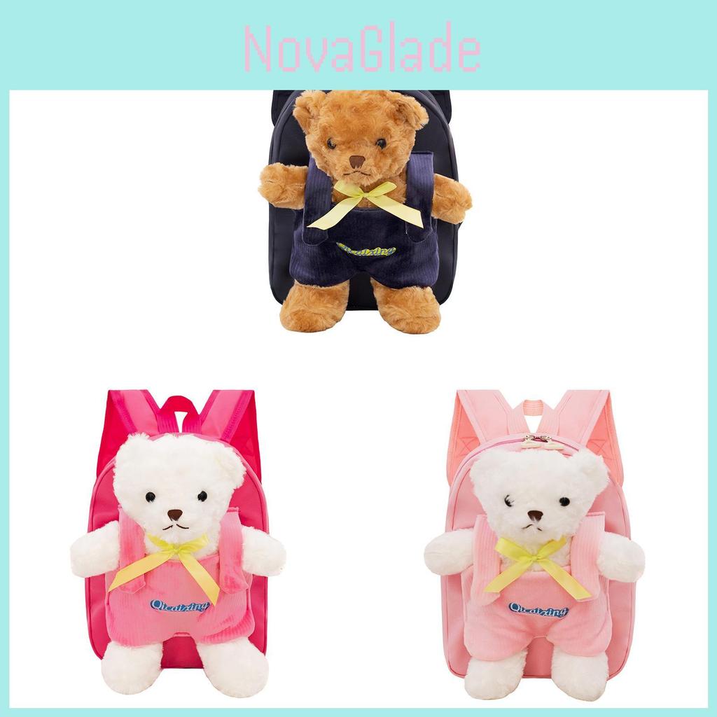 Cute Bear Plush Kids Backpack With Waterproof Nylon For Kindergarten And School Use