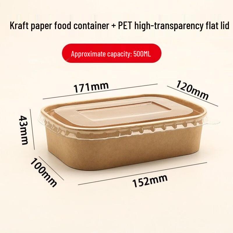Disposable Kraft Paper Takeaway Meal Box with PET Flat Lid