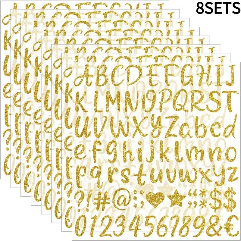 8SETS /648 Gold Letter Sticker, Glitter Letter Sticker 1 Inch, Self Adhesive Waterproof Vinyl DIY Crafts, Gift Packaging, Signs, and More