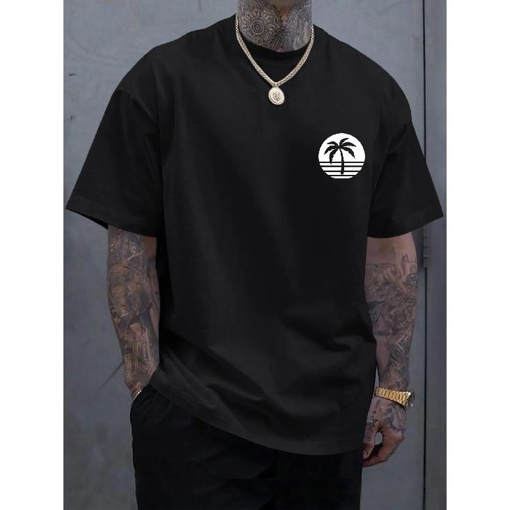 Multiple Color Men T-shirt Coconut Tree Printed Cool Tee Summer Oversize O-neck Short Sleeve Top for Man