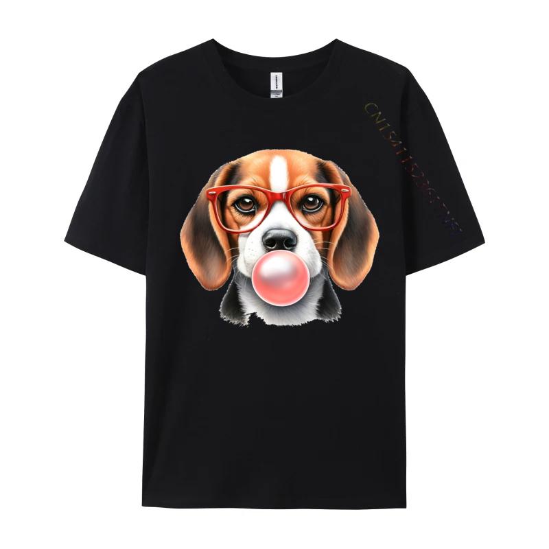 Mens TShirt Beagle Wearing Red Glasses Blowing Bubble Tshirt Unique 100 Cotton Tee Shirt Male Tshirt