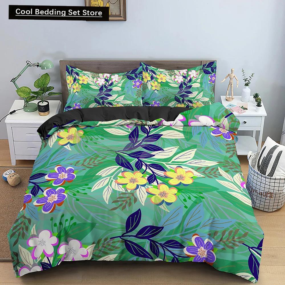 Comforter Flowers King Queen 3D Colorful Floral Printed Polyester Bedding Set For Teens Adults Women Leaves Soft