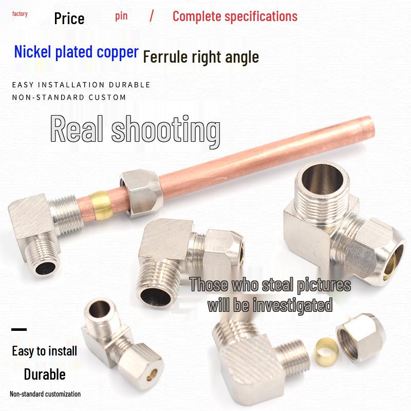 Nickel-Plated Copper Elbow Pipe Fitting (Right-Angle, 1/2" 2/3" 3/4", 6-14mm for Oil Pipes)