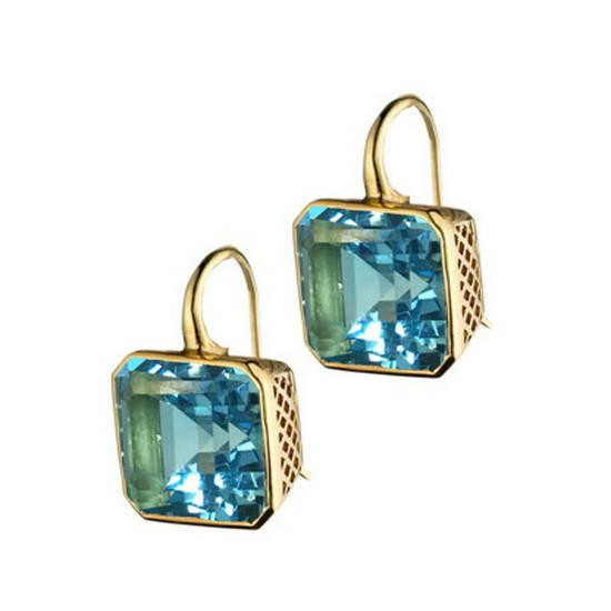 He Cheng European and American Fashion Sapphire Dangle Square Earrings, Individually Packaged