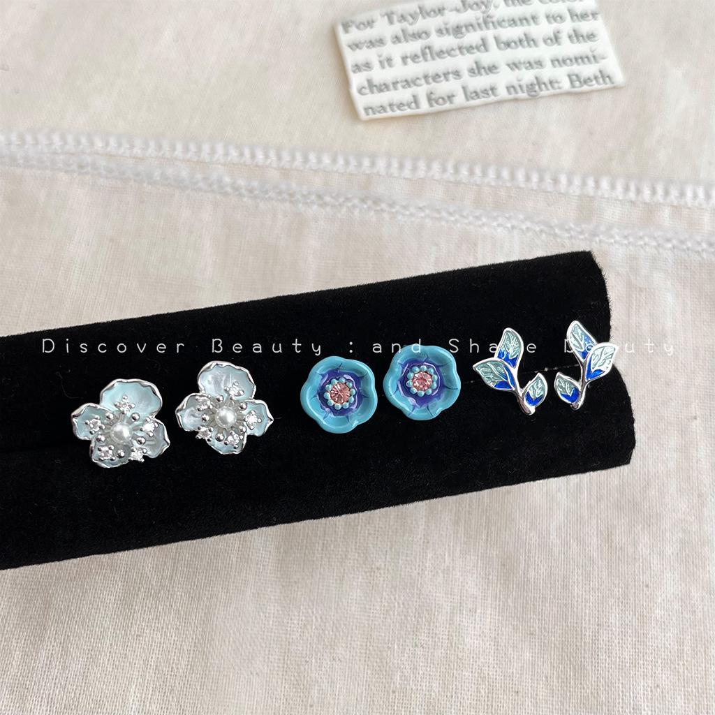 Sweet Blue Floral Enamel Stud Earrings – Korean Style Fashion for Women