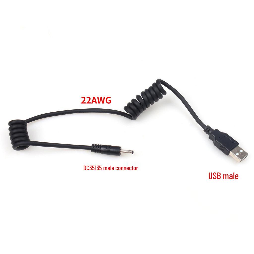 USB Male To Dual DC35135 Spring Cable, Black TPU, 2-Section Split
