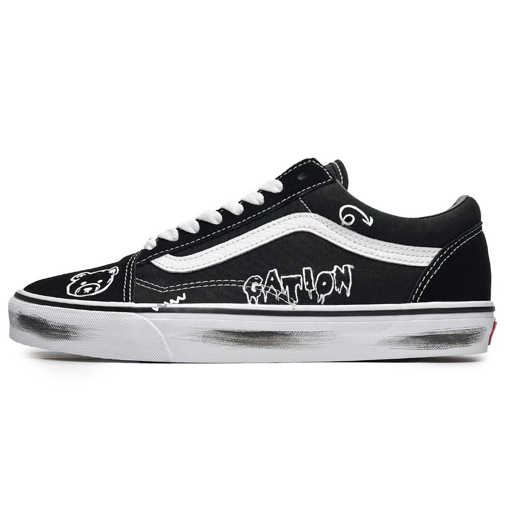 Vans Old Skool Graffiti Bear Slip Resistant Abrasion Resistant Low Top Skateboard Shoes Unisex Black White VN000D3HY28(Team285-)