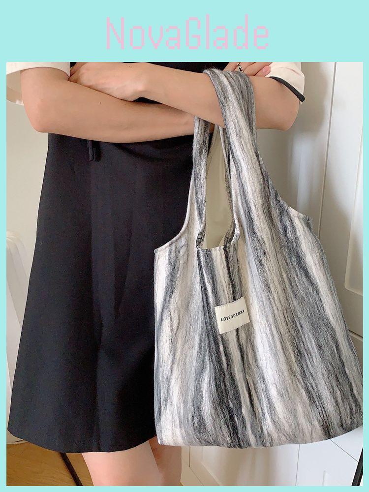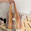 Stylish Woolen Striped Shoulder Tote Bag Trendy Canvas Bag For Students And Shopping